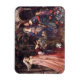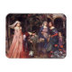 Pintura inspirada en el renacimiento de personas en el jardín con fuente. Centro de la pieza en una doncella en un manto. Bonito arte vintage de John William Waterhouse. Dominio público.
