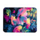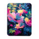 Un jardín atrevido y pintoresco repleto de flores florecientes en rosa, azul y morado.