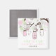 Las jarras de mason verde rosa y de menta Salven el imán de la fecha ilustraciones caprichosos de marrón, rosa, jarras de albañilería verde menta, flores y cuerdas de corazones colgados en un árbol con dos pájaros amorosos marrones rodeados por una variedad de rosa, flores verdes de menta y marrones. Es perfecto para bodas de verano, primavera y exterior. com.