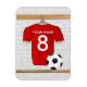 Una camiseta personalizada de fútbol de fútbol de rojo con guarnecido blanco, colgada en un vestuario deportivo con una botella de agua, botellas de fútbol y una pelota de fútbol. Sólo tienes que añadir el nombre y el número (o edad) del jugador de fútbol, hincha de fútbol o entrenador del equipo de fútbol para crear un regalo único de fútbol. Hay otros colores de equipo de fútbol disponibles en nuestra tienda y damos la bienvenida a las peticiones de los personalizados. Si desea cambios en este diseño, como combinaciones de colores diferentes, póngase en contacto con nosotros a través de nuestra tienda antes de la compra y estaremos encantados de asistirle.