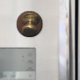 Una perilla de la puerta espera a que se encienda este imán, con un versículo de la biblia John 14:2-3.