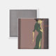 Los marcos azul-violeta dan la profundidad de esta imagen. La mujer, con un fondo violeta, se encuentra en un espacio más luminoso. La dama, sin embargo, se ve de lado, lo que da más distancia y misterio. En un vestido verde oscuro, la figura es delgada y elegante, como si algo se le pasara por encima para detener su progreso.