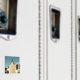 Magnate con fotografía acuática de una pared y cruz en la Misión San Juan Capistrano.