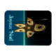 Imagen fractal de tono marrón que sugiere a un cazador inuit altamente estilizado, usando ropa de piel tradicional, sosteniendo un arpón con la cabeza de marfil. La imagen es superpuesta en un fondo que representa el oscuro invierno polar. "Joyeux Noel" aparece en azul y blanco resplandeciente.