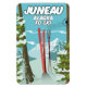 Afiche de viaje de Juneau Alaska al esquí - Impresión de las vacaciones de esquí alpino.