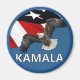 KAMALA Texto bajo un águila calva y la bandera estadounidense.