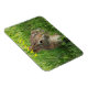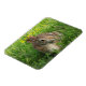 Una toma de un conejo conejo en hierba verde en Hutchinson Kansas USA que es brillante y colorido. Eso es en un imán cuadrado.