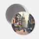 Personalizado ai ilustracion de Calcuta, India Un imán con un ilustracion de calles concurridas en el centro con edificios, restaurantes, tiendas y gente en sus motos.