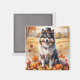 Imán Keeshond En El Otoño Deja El Arte De Acción De Gra
