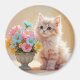 Gatito de mesa con Bouquet de flores pasteles. Aquí Kitty, Kitty.