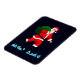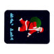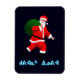 ¿Crees en Santa? Una imagen de un Papá Noel en zancadas, llevando una bolsa verde de regalos; superpuesta en un fondo estrellado. El texto inuktitut que dice "Kuvianak Innovia" (ᑯ ᕕ ᐊ ᓇ ᒃ ᓄ~^Feliz Navidad), en el alfabeto sílabo adoptado en Nunavut, también aparece en azul y blanco resplandeciente. A los inuit se les conoce comúnmente como esquimal, pero ese término ahora está desfavorecido pues se considera peyorativo.