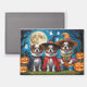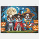 Escena divertida de Halloween con un pequeño y travieso cachorro mirando desde una calabaza tallada, rodeada de vibraciones de otoño espeluznantes y divertidas. Con un encanto descarado y colores otoñales, es el toque de humor perfecto para la temporada.