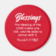 Este imán de bonito presenta el maravilloso versículo de la Biblia de los proverbios 10:22 y la palabra bendición.