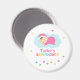 Un bonito y colorido favor para que los clientes recuerden al fiesta de la ducha de bebé. El diseño tiene una niña pequeña durmiendo tranquila y alegremente en pijamas rosas y gorra de dormir. Está tumbada en la cómoda nube que está lloviendo pequeñas gotitas de corazones, jugando a la imagen de la ducha de bebé. Personaliza fácilmente con el nombre. Una colorida paleta arcoíris perfecta para una ducha de bebé.