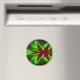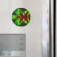 Este imán presenta una imagen fractal que se asemeja a una mística libélula roja rodeada de brillantes llamas verdes.