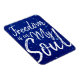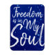 Donde más pueda existir la libertad excepto en el alma. Una bonita letra de estilo manuscrito con un fondo azul oscuro de estrellas.