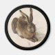 Fina arte del siglo XVI de Albrecht Durer. El conejo joven con orejas largas y colores dorados se sienta sobre un fondo rosa pálido.