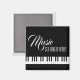 Este diseño es para los amantes de la música jóvenes y mayores. Este imán cuadrado presenta un diseño sencillo y elegante con un teclado de piano. Encima del teclado, el texto dice "La música es cosa de belleza". El fondo negro se puede personalizar.