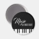 Este diseño es para los amantes de la música jóvenes y mayores. Este imán redondo presenta un diseño sencillo y elegante con un teclado de piano. Encima del teclado, el texto dice "La música es cosa de belleza". El fondo negro se puede personalizar.