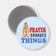 Regalos cristianos para tu compañero de oración, amigo secreto, profesor de escuela dominical, clase de escuela dominical y amigos cristianos. El diseño tiene manos rezando y las palabras Oración cambian las cosas. Disponible en camisetas, tazas, botones, imanes, totes, gorras y mucho más.