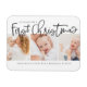 El diseño en la parte delantera consiste en una juguetona tipografía cursiva de "Primera Navidad". Añada una foto personalizado de su recién nacido y añada el nombre del bebé y de la familia. Este diseño es moderno, moda, lúdico y divertido.