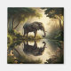 Imán elefante. Un bonito sereno ilustracion ai de un elefante parado en el bosque reflejando en el agua. Una tranquila pieza de arte para relajarse.