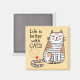 Un gracioso garabato de un gato sentado con los ojos cerrados, mejillas rosadas y parches de bronceado. A su izquierda están las palabras que la vida es mejor con los gatos con un divertido tipo de letra negra. Un pequeño corazón de amor rojo está zumbando desde la letra C y el fondo es de color beige.