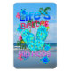 Un diseño tropical y muy colorido que celebra el uso de Flip Flops, la vida de la isla y las horas en la playa. Flip flops con un patrón hawaiano de Máscaras Tiki y tortugas marinas, con palmeras, flores de hibisco y tortugas honu. La Vida Es Mejor En Flip Flops