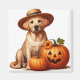 Imán Labrador amarillo Cachorro con Gorra con calabazas