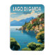 Diseño artístico vectorial del lago Garda. El lago de Garda, en el norte de Italia, es conocido por sus aguas cristalinas. En el extremo sur, la ciudad de Sirmione está dominada por la Rocca Scaligera, una fortaleza con vistas al puerto.