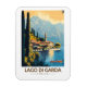 Diseño artístico vectorial del lago Garda. El lago de Garda, en el norte de Italia, es conocido por sus aguas cristalinas. En el extremo sur, la ciudad de Sirmione está dominada por la Rocca Scaligera, una fortaleza con vistas al puerto.
