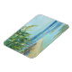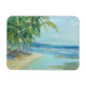 "Blue Coastal Lagoon" por Suzanne Wilkins. Cuenta con una tranquila playa con árboles tropicales.