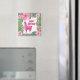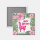 Pink Happy Smiling Lama, este diseño presenta un lindo y adorable Lama sonriente Rosa Happy Sonriente rodeado de palmeras verdes y flores tropicales rosas.