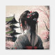 Generadores de computadoras diseñan einer Geisha. Abbildung einer Frau mit einer hübschen Frisur und Blüten im Haar welche einen Kimono trägt en einem schlichten Design mit leichten Linien. Japanisches Design im AI - Estilo de viaje medio. Rote Farbornamente verleihen dem Bild das gewisse etwas.