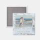 Un elegante imán Save the Date con tu propia foto enmarcada por un diseño moderno con conchas blancas.