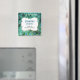 Un imán personalizado de cumpleaños "gracias" al estilo Art Deco / Art Nouveau. Con un patrón de colores vivos de plumas de pavo real exóticas y silvestres en verde azulado bonito, verde joya, agua y azul cobalto. Artístico y elegante, creado con acuarelas. Moda y diseño elegante. El centro tiene un marco dorado y elegante, donde se puede personalizar con los detalles de la fiesta de cumpleaños.