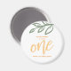 Obtén este lindo imán de primer cumpleaños acentuado con hojas de pintura de doodle. Personalizar con el nombre de su hijo o hija.