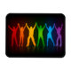 Las seis siluetas de pie de Slipperyjoe con los brazos levantados y tomados de la mano celebración unidad diversidad colectivo formando una cadena unificada continua fondo de contraste negro profundo figuras del arcoíris brillan con intensidad regalos artísticos del orgullo gay LGBTQIA cada uno diferente color audaz debajo de ellos tenue reflejo reflejado identidades espectro vibrante alegre rojo naranja amarillo verde azul violeta