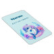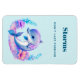 Un imán flexible con un ilustracion adorable. Un delfín azul y púrpura rodeado de plantas submarinas de colores bonitos. Diciendo: Las tormentas no duran para siempre.