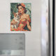 Este vibrante ilustracion te transporta a un paraíso tropical con un impresionante enganche. Una latina belleza con un voluminoso cabello oscuro, adornada con una audaz flor naranja, exuda glamour retro en un ardiente vestido a espaldas. El vestido, salpicado con un patrón de hojas exuberantes, abraza sus curvas e irradia calor en un fondo de vegetación y suaves tonos verde azulados. Enclavada en sus brazos, un perro adorable con un abrigo marrón y blanco, sus grandes ojos y su pequeño collar le dan un toque reconfortante. Sus elegantes pendientes dorados y su delicada decoración mezclan el encanto vintage con un ambiente alegre y veraniego. Perfecto para los que adoran el arte clásico con un toque tropical y una dosis de amor al cachorro!