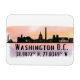 Magnet presenta la silueta de la ciudad de Washington DC con salpicaduras acuáticas y coordenadas de mapa de latitud y longitud