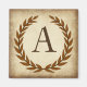 Una delicada corona de laurel está recubierta por un fondo de papel de papiro envejecido al estilo romano clásico. Este diseño se personaliza con el monograma "A" en un rico tono de siena.