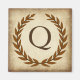Una delicada corona de laurel está recubierta por un fondo de papel de papiro envejecido al estilo romano clásico. Este diseño se personaliza con el monograma "Q" en un rico tono de siena.