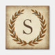 Una delicada corona de laurel está recubierta por un fondo de papel de papiro envejecido al estilo romano clásico. Este diseño se personaliza con el monograma "S" en un rico tono de siena.