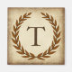 Una delicada corona de laurel está recubierta por un fondo de papel de papiro envejecido al estilo romano clásico. Este diseño se personaliza con el monograma "T" en un rico tono de siena.
