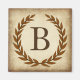 Una delicada corona de laurel está recubierta por un fondo de papel de papiro envejecido al estilo romano clásico. Este diseño se personaliza con el monograma "B" en un rico tono de siena.