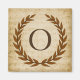 Una delicada corona de laurel está recubierta por un telón de fondo de chapa vintage de estilo romano clásico. Este diseño se personaliza con el monograma "O" en un rico tono de siena.