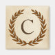 Una delicada corona de laurel está recubierta por un fondo de papel pergamino de estilo romano clásico. Este diseño se personaliza con el monograma "C" en un rico tono de siena.