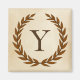 Una delicada corona de laurel está recubierta por un fondo de papel pergamino de estilo romano clásico. Este diseño se personaliza con el monograma "Y" en un rico tono de siena.