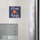 Lavavajillas imán sucio/limpio con un diseño costero azul marino, de escritura blanca y de pez espada rojo.